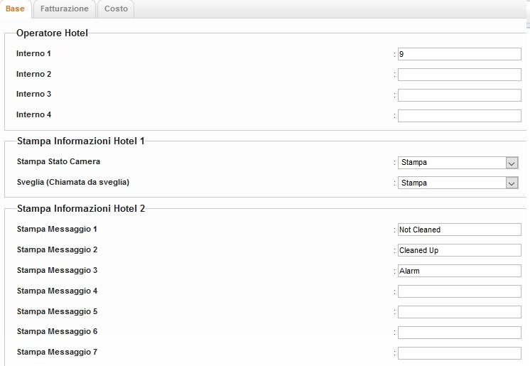Per l'uso dei servizi HOTEL configurare le impostazione come segue: