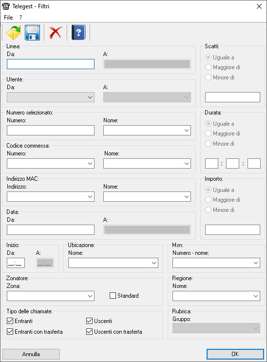 I filtri impostati non restano memorizzati. Dopo ogni chiusura di una tabella i filtri vengono reinizializzati, cioè vengono impostati in modo che sulle tabelle vengano visualizzati tutti i dati presenti nel database. E' però possibile salvare le impostazioni dei filtri su un file che può essere aperto in qualsiasi momento. La Visualizzazione dei dati d'utente non può essere sottoposta a delle ricerche con i filtri dato che la visualizzazione avviene tramite quella dell'utente singolo.